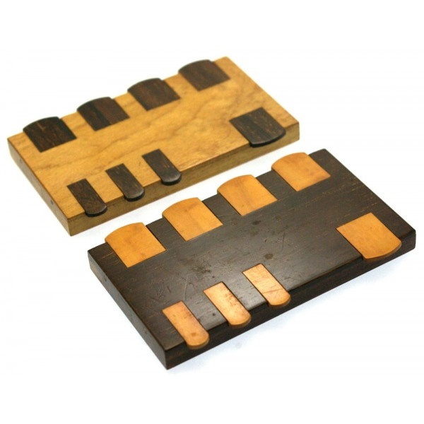 Beautiful highly polished hardwood Camden Whist markers by Goodall & Son. London. Each 9.5cm long. The different sized tabs on each side are flipped up or down to "keep a tab" of points. Good working condition, supplied in original box.