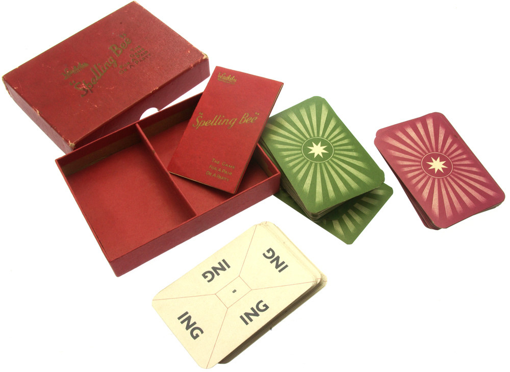 Supplied in original box with two decks of spelling bee cards and instruction booklet. Box measures 13 x 9.5cm
