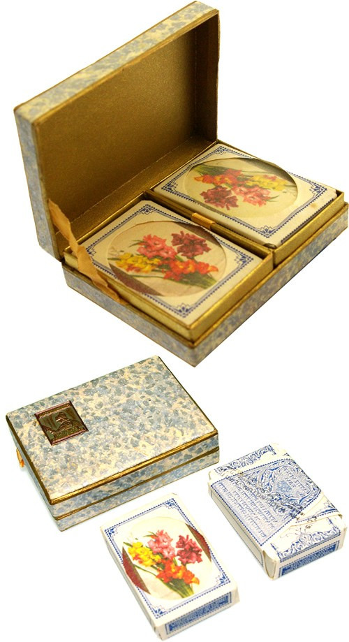 Duty sealed Patience playing card twin decks with floral pattern in original Waddingtons presentation box. Very good condition.