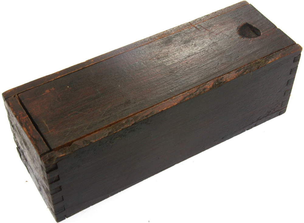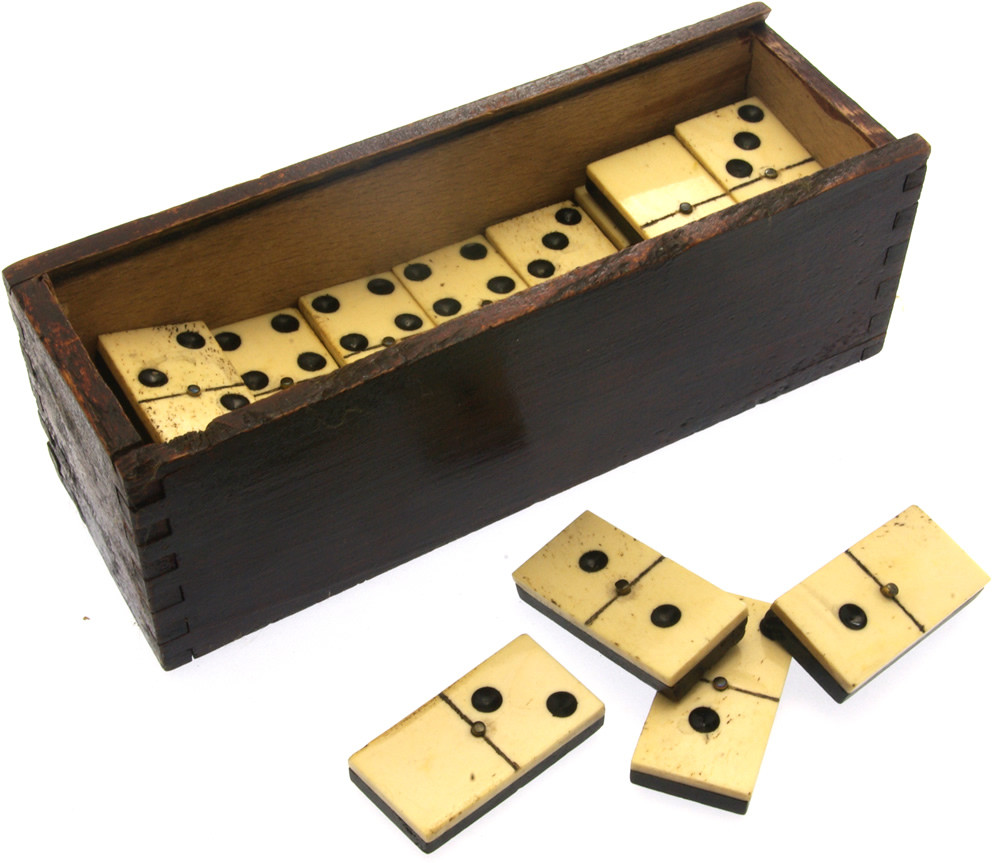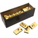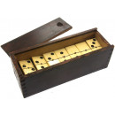 Ebony and bone dominoes in dark wooden box