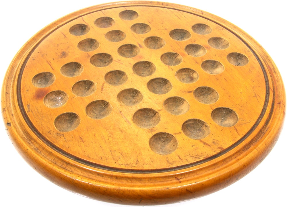 Lovely turned Victorian treen solitaire board game with original clay marbles.