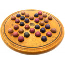 Lovely turned Victorian treen solitaire board game with original clay marbles. The board measures 18cm diameter with 12mm marbles