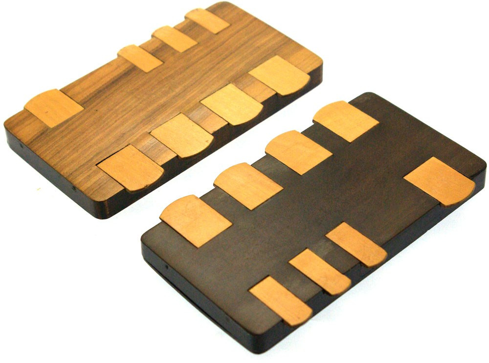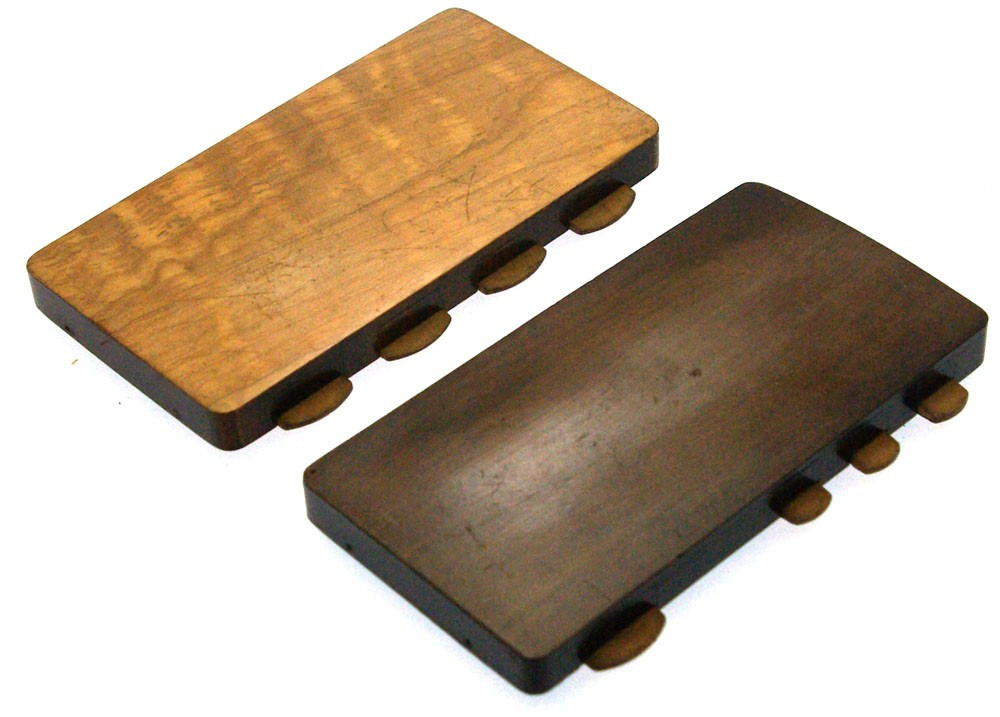 Highly polished hardwood Whist markers with sprung lift-up tabs.