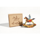 decorative tin toy rider on rocking horse with chain. 8cm All of our tin toys are reproduced using the same manufacturing techniques employed in the mid-19th century. Being somewhat primitive compared to modern manufacturing methods, the toys sometimes have little marks or scratches which add to their authentic quirky nature. The items are likely to have sharp points and small parts and are NOT SUITABLE FOR CHILDREN. They are sold as nostalgic replica products for adult collectors only and are not designed to comply with European Toy Safety Legislation.