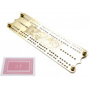 Our antique cribbage boards are sold complete with a new set of standard 25mm brass and chrome cribbage pegs. Playing card for size indication only.