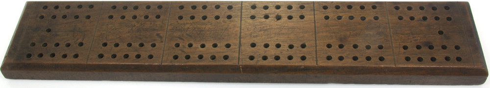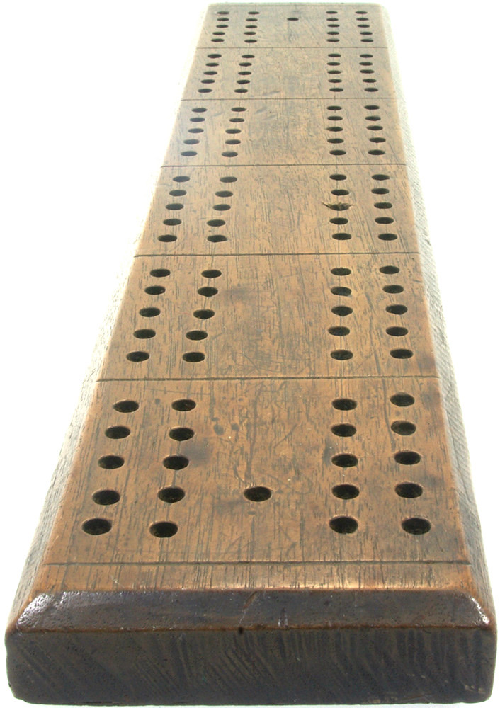 Extra large solid oak cribbage board. Dimensions: 41 x 8 x 2cm Hole size 5mm. Our antique cribbage boards are sold complete with a new set of standard 25mm brass and chrome cribbage pegs.