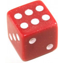 A traditional, 6 - sided, red casino dice. 16mm. Made from igh density Urea Stone / Carbamide material