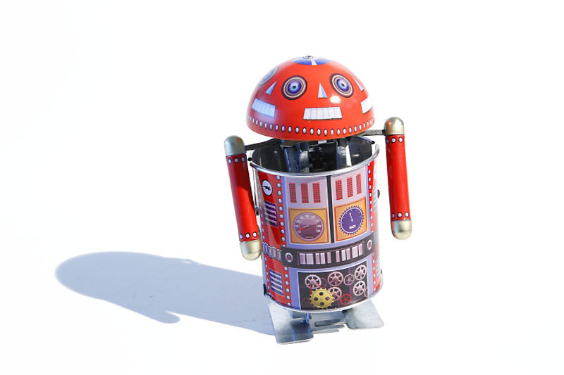 walking spinning head clockwork red robot
