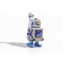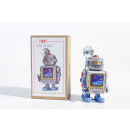 Small space exploring Robot with screen and satellite receiver clockwork tin toy with key. 12cm approx