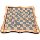 Lovely hand made wooden version of the classic game of snakes and ladders. a strategy board game for two to four players, in which the players race their playing piece from start to finish according to the rolls of a single die. Dimensions : 24 x 24 x 2 cm