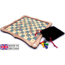 Solid wood board game and pieces, Hand made in the UK. Suitable for 2 - 4 players aged 8+, Dimensions : 24 x 24 x 2 cm