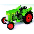 Very high quality replica, driven by a mechanical spring drive. The tractor boasts a four-speed gearbox (3 forward gears + reverse) selected with the gear lever, a working handbrake, front suspension, full working steering and towing mechanism. Hours of fun! 1:25 scale, Kovap, 15cm long. Czech republic.