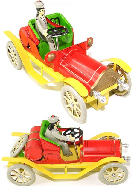 Great detail on this smart, all-metal tin car with driver, clockwork motor with key. 17cm. China.