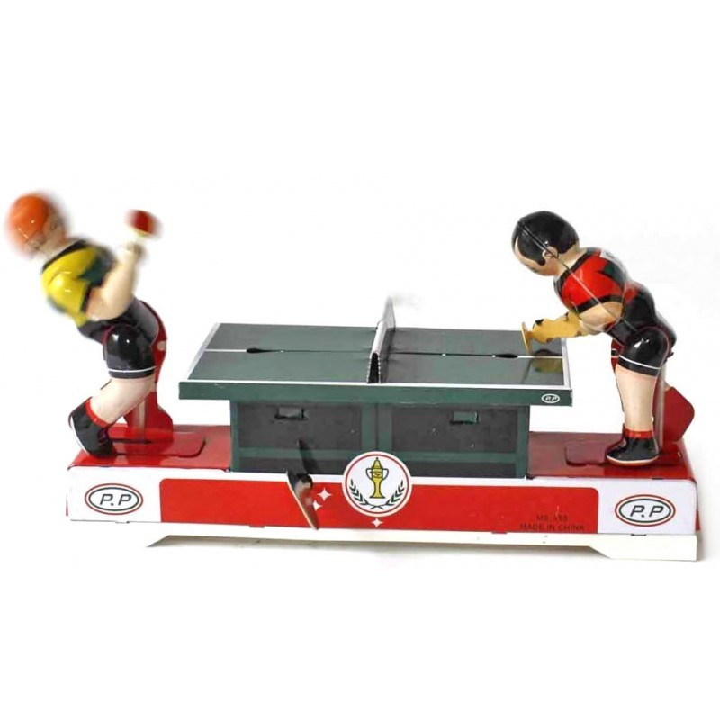 The clever mechanism makes the ball fly across the table as the players lean backwards and forwards to play it. Highly detailed collectors version of this classic tin toy. 25cm long. Made in China