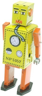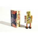 This as an excellent replica of what is thought to be the worlds first tin toy robot. The Lilliput Robot first appeared in Japan in the late 1930's. He measures approx 16cm tall and . Wind him up and he scoots along. Key and box with colourful graphics is included.