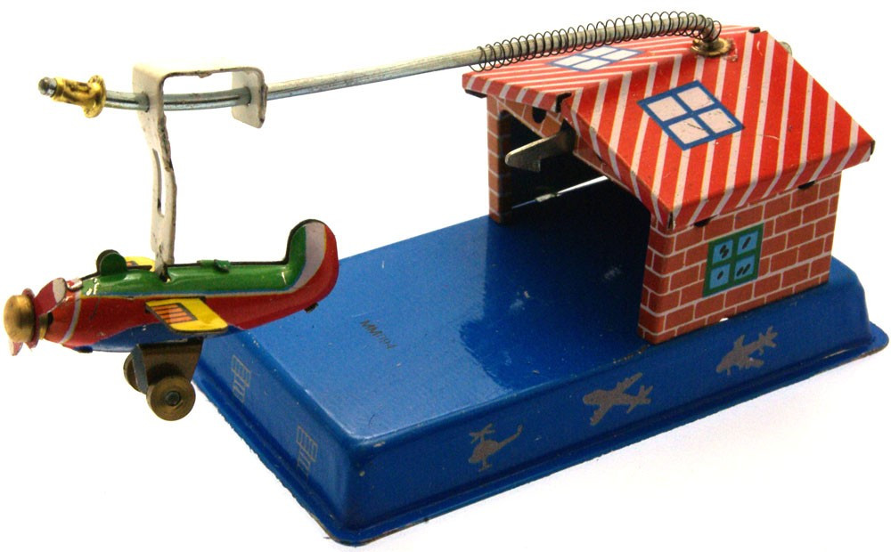 Pull the plane back into the hangar, release the lever at the rear and watch it fly up to the end of the rod. All metal construction, 11cm long. Made in China.