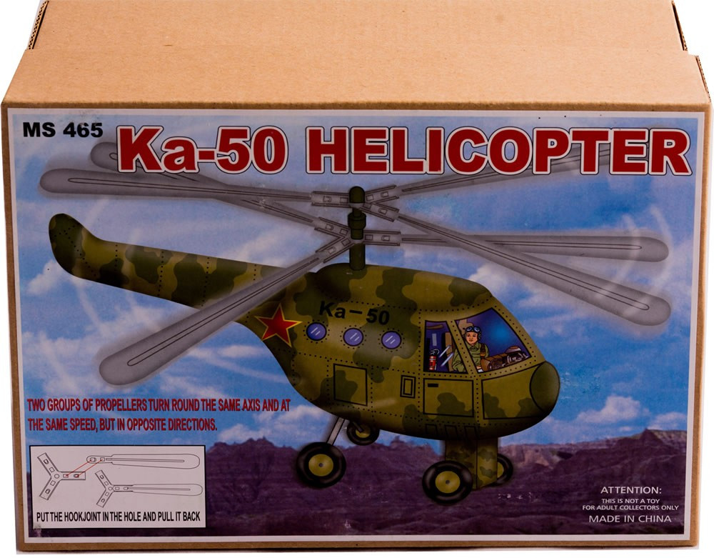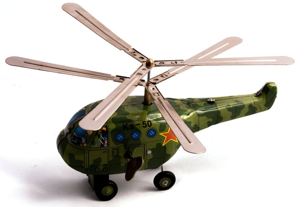 KA50 Green camouflage twin propeller helicopter with removable propellers.