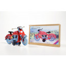 This is a large all tin motorcycle made in China. Reverse - pull friction driven, with articulated front forks. Supplied in a colourful box. 23 cm long.