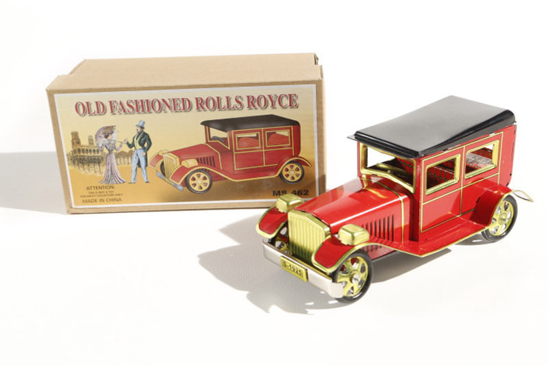 Clockwork tin toy Rolls Royce car, all metal construction supplied with key and smart printed box. Turn the key in the boot and watch it elegantly pull away. 16cm.