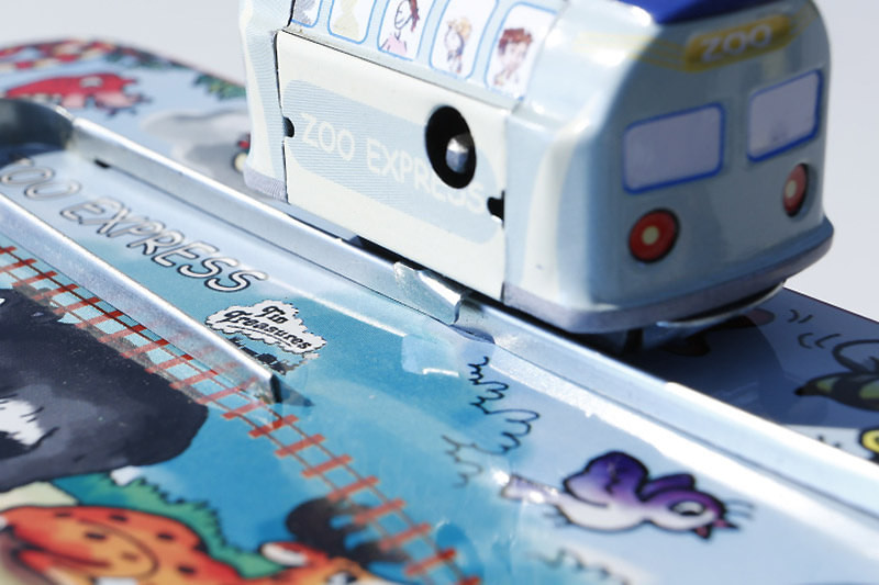 Zoo Express train track with clockwork train. wind up safari bus that goes round the zoo to see all the animals. fast passed track tin toy.