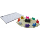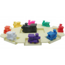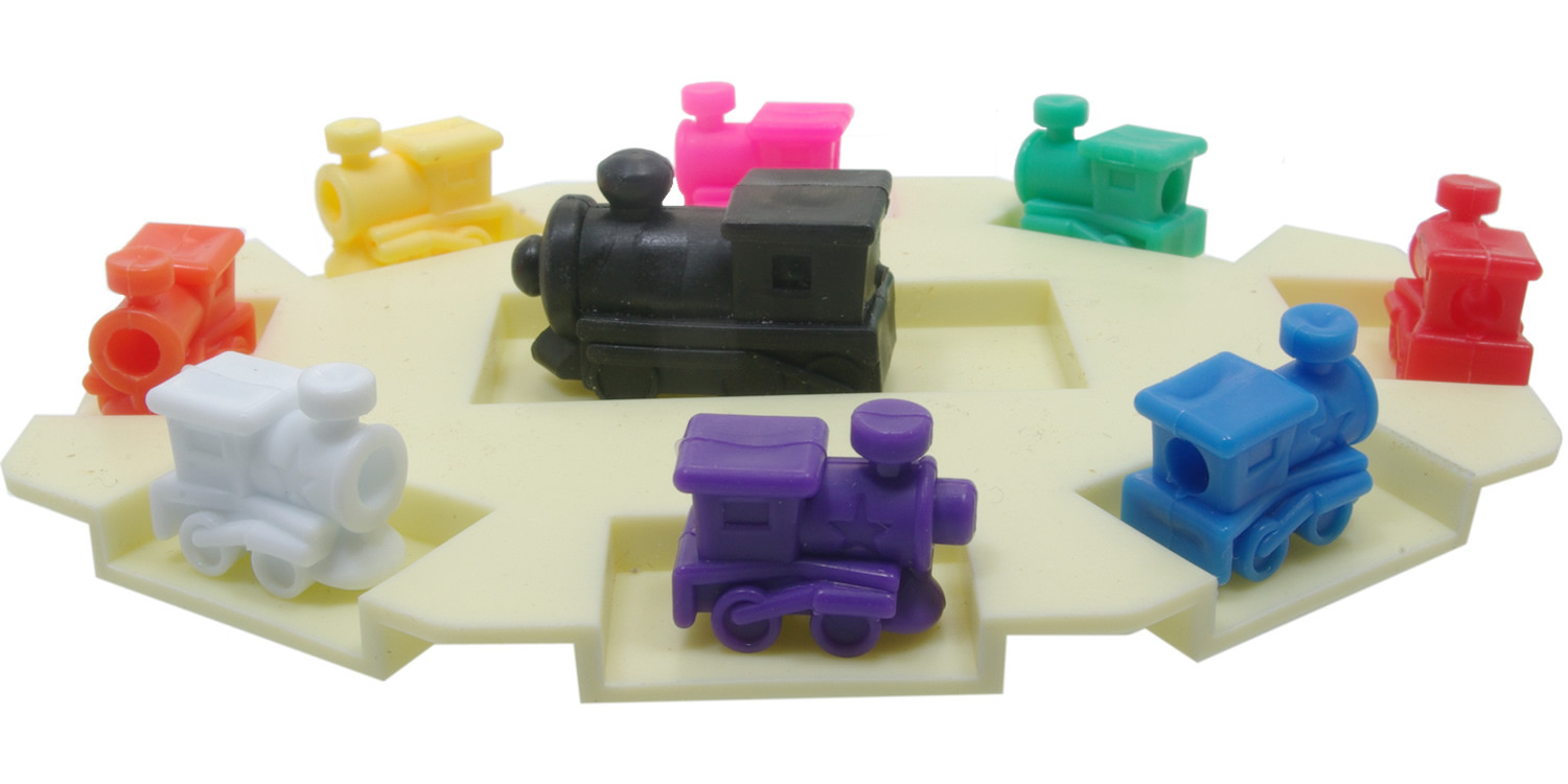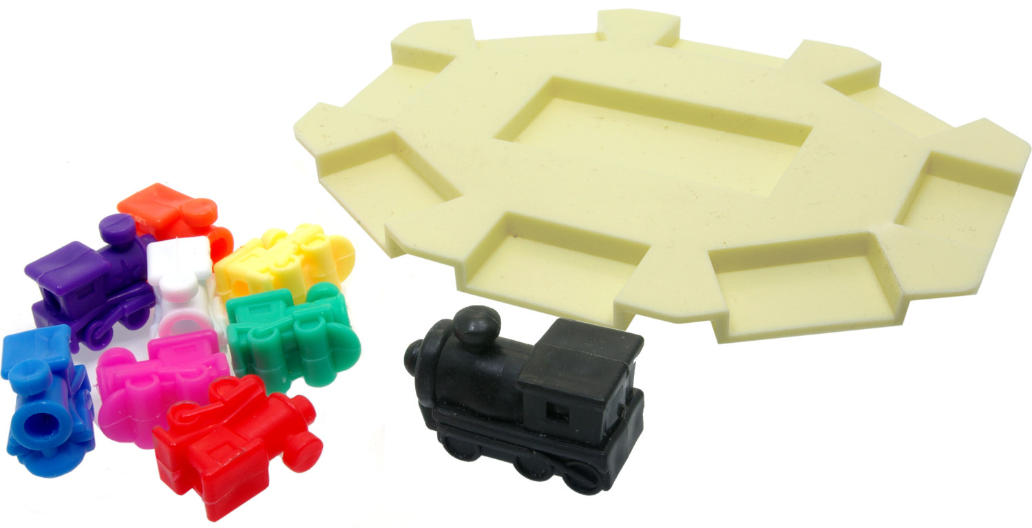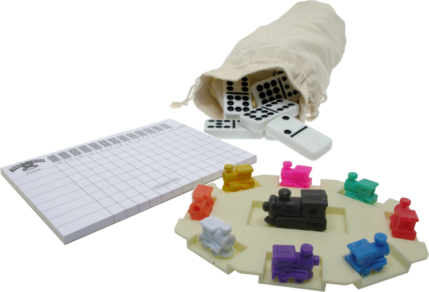 Double 9 Mexican dominoes set with 55 dominoes, Mexican train hub, 9 trains, score pad and rules.