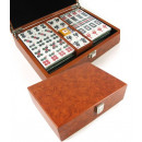 Cream and light green sandwich tiles with Arabian indices, 3 dice, 1 wind dice, an elegant, varnished, wooden presentation box with clip fastening. Includes instruction booklet by David Pritchard in clear English!! Tile size 28 x 20 x 13 mm. Box size 24.5cm x 18.5cm. Ages 12+